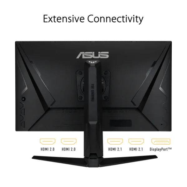 The 28-inch TUF Gaming VG28UQL1A 4K UHD gaming monitor featuring a Fast IPS panel and NVIDIA® G-SYNC® Compatible for blistering-fast 144 Hz gaming. Its clever combination of Display Stream Compression (DSC), ASUS Extreme Low Motion Blur Sync (ELMB Sync) and AMD FreeSync™ Premium technologies enables buttery-smooth gaming on PCs. Console gamers can get their fix, too, as TUF Gaming VG28UQL1A supports up to 4K 120 Hz visuals via HDMI® 2.1 without chroma subsampling. In addition, it meets DisplayHDR™ 400 compliance standards and has a 90% DCI-P3 gamut to offer exceptional colors and contrast.