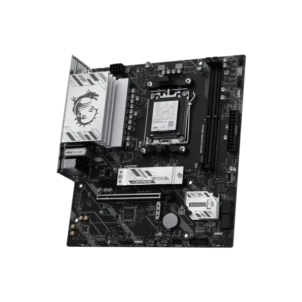 The B850M GAMING WIFI6E is crafted to offer extensive connectivity, versatile tools, and a premium Wi-Fi solution for gamers seeking a comprehensive experience. Featuring Wi-Fi 6E, 2.5G LAN, PCIe 4.0, Gen 5 M.2 solution, and exclusive EZ DIY features, it is ready for 24/7 non-stop gaming optimized for AMD Ryzen™ 9000 series processors.