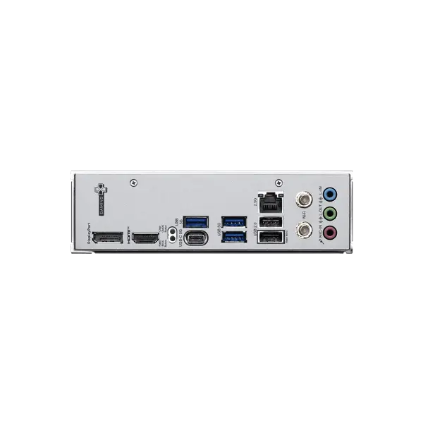 | Back panel ports | Clear CMOS Button USB 5Gbps (Type-A) 2.5G LAN Wi-Fi / Bluetooth HD Audio Connectors DisplayPort 1.4 HDMI™ Flash BIOS Button USB 5Gbps (Type-C) USB 2.0 |