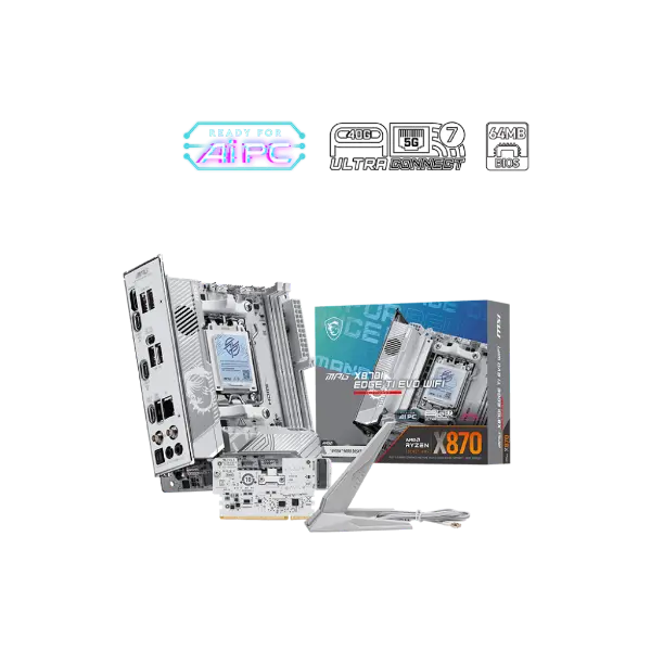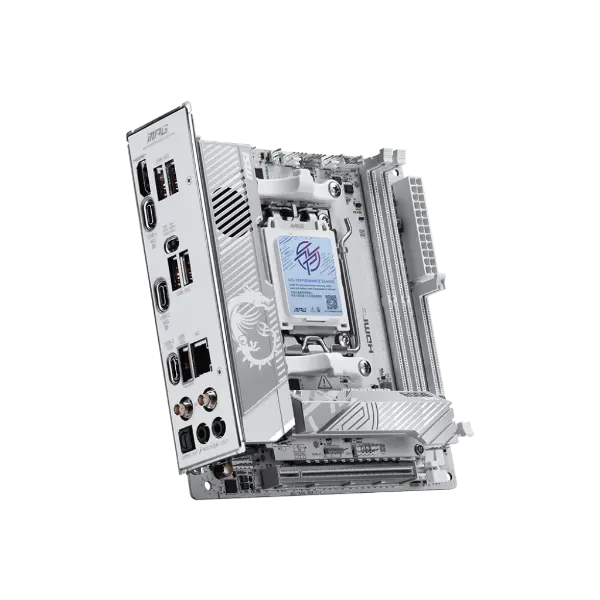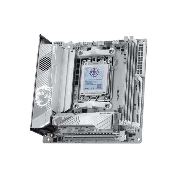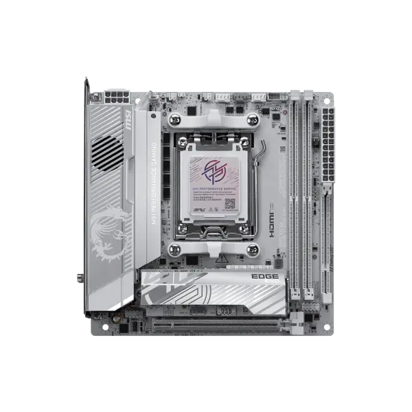 MSI MPG X870I EDGE TI EVO WIFI is covered with a silver-white colour scheme for white PC build lovers to show off different identity. It is also powerful because of its true Wi-Fi 7 solution, 5G LAN, USB4, and the latest PCIe 5.0 compatibility, and this is the best white theme X870 ITX motherboard for AMD Ryzen™ 9000 series processors.